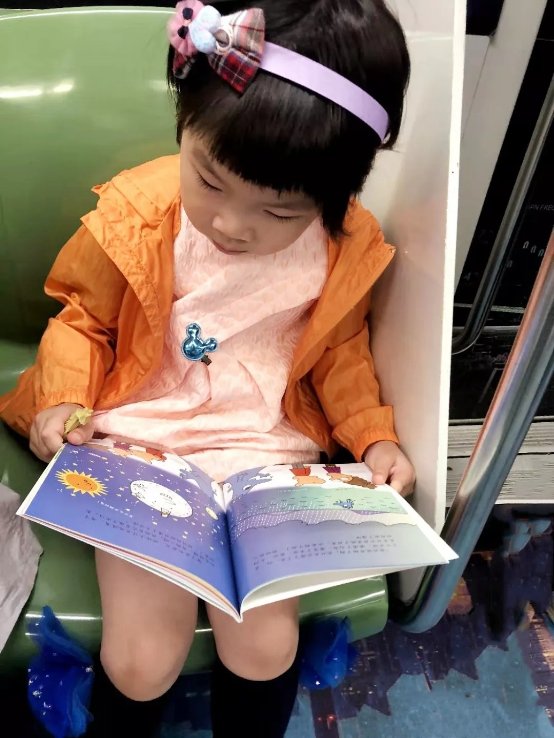 Kelly小朋友在地铁上看书