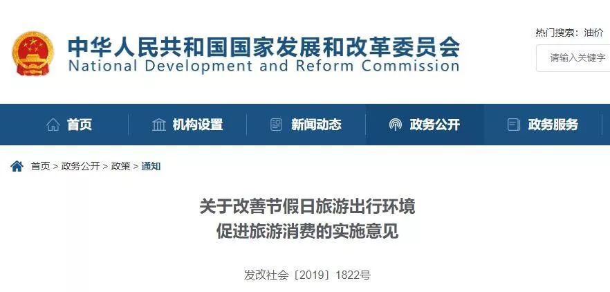 12月12日,国家发改委网站公布了《关于改善节假日旅游出行环境促进旅游消费的实施意见》,要求加大力度落实职工带薪休假制度,推动错峰出行。