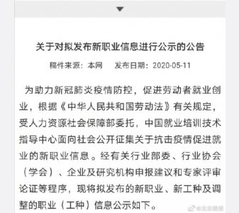 人社部拟发布10个新职业 拟新增直播销售员工种