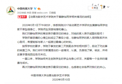 学生疑因论文坠亡 中国传媒大学启动了对此事的核查工作