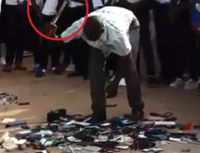 非洲加蓬一所高中保安砸碎上百部没收手机 引发不小的争议